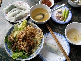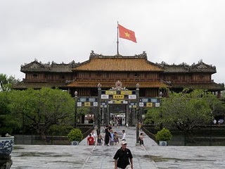 I think our day was a pretty standard type of "tour" for Hue. After the river trip, we disembarked at the beautiful Thien Mu Pagoda and explored that site. We also stopped at a private home to look at the gardens and typical central Vietnam style house. It was lunch time when we finished and this is where I really began to enjoy our guide. Her name was Tien and besides speaking excellent English, she really was willing to be flexible and helpful to make this a memorable trip. I expressed my love for local Vietnamese food and she told me that the food in central Vietnam was quite a bit different than Hanoi. She asked what my favorite foods were--(Bun Cha and Banh Cuon) and proceeded to take us to a local restaurant that served both of them. She wanted to show us how these two dishes were different from Hanoi. Well, I was in heaven --and I also was able to see first hand how the locals used their locally grown foods to make an excellent dish. The noodles were different--and the pork was grilled whole pieces of meat instead of paddies. The Banh Cuon was similar except the filling had duck instead of pork. Although it was not necessary, nor expected, I paid for our guide's lunch each of the days we were with her. Of course--the total lunch bill (2 Bun Cha dishes, 5 plates of Banh Cuon and 3 drinks) was less than $5....so this was not a huge expense. But the place was clean, the food excellent and we were totally stuffed when we left!