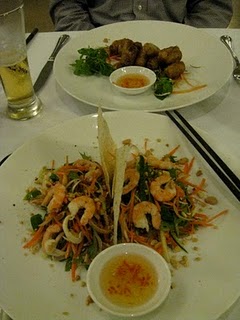 We had dinner at the hotel because of the rain--and I was very glad we did! The food was wonderful....banana flower salad, Hue spring rolls, caramelized fish with the best flavored bok choy I have every tasted! We ended the evening with a shared dessert and a quick walk around the area --since the rain had eased up. It really was a lovely evening and the ambiance of the hotel made the beginning of this trip wonderful.